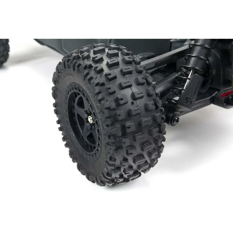 Tough, multi-spoke black MT wheels with dBoots® Fortress™ MT tires give the GRANITE™ 4X4 MEGA RTR effective traction for bashing on almost any terrain.