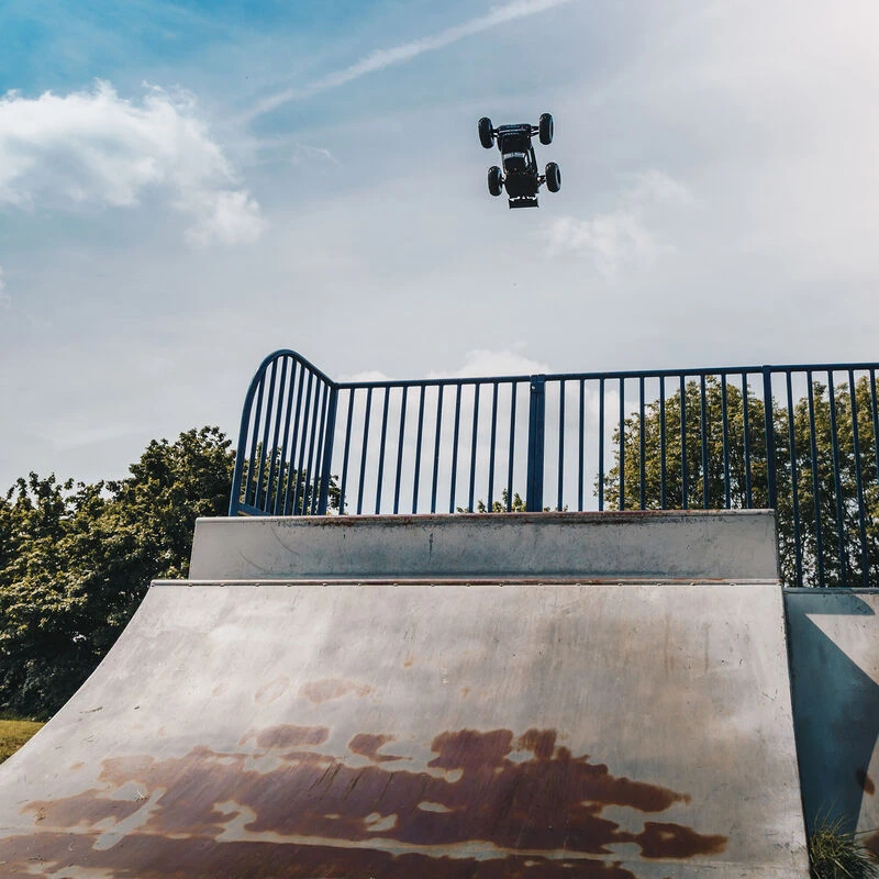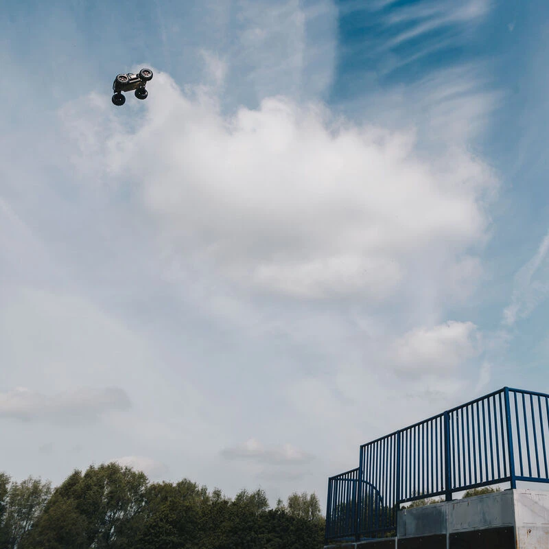 With adjustable 16mm oil-filled shocks on aluminum towers soaking up bumps, the NOTORIOUS™ 6S BLX 4WD Stunt Truck blasts over dirt, asphalt, and grass — over all terrain, in all conditions. Its tough stunt truck wheels come outfitted with multi-terrain dBoots® BACKFLIP™ tires that provide all the traction you’ll need to flip, grip, wheelie and spin. A high downforce wing helps keep the vehicle grounded. Everything about the NOTORIOUS™ 6S BLX 4WD contributes to confident control and responsive handling at thrilling high speeds.