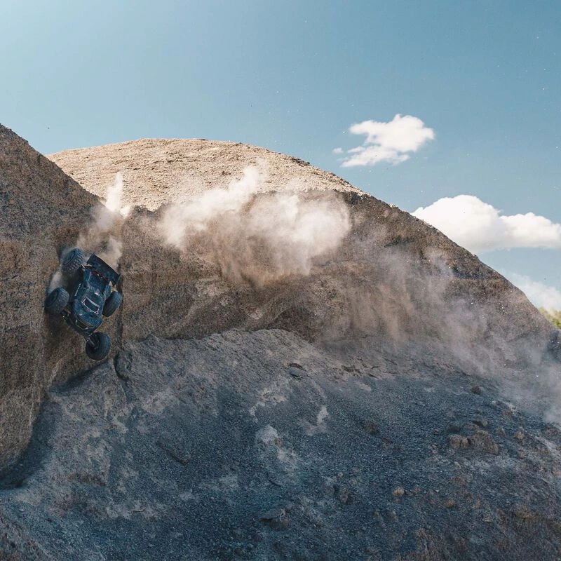 Rugged chassis components, including all-metal diff outdrives and gearbox internals, a heavy-duty drivetrain, strong composite chassis side pods, durable steel driveshafts, and more contribute to unstoppable bashing performance. The EXB front bumper and skid plate let you fearlessly tackle almost anything that stands in your way.