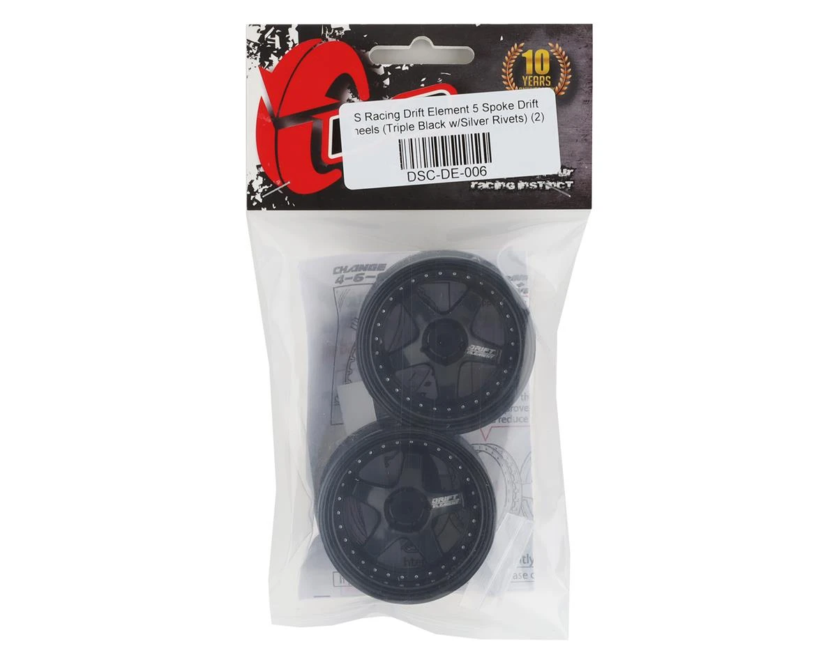 The DS Racing Drift Element 5 Spoke Drift Wheels are a great option to add that custom look to your RC drift car. These wheels feature an adjustable offset allowing you to have a factory, tucked or even stanced look. Each wheel is broken down into five pieces: Inner wheel, Outer wheel, Wheel Face, Inner rivet ring and Outer rivet ring. DS Racing has made these components available in multiple color and style options allowing you to select the wheels that will best match your build.