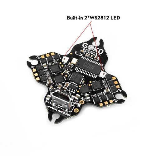 The GOKU Versatile F4 5-IN-1 AIO is another versatile and highly integrated circuit board in the GOKU Versatile series! Built-in 250mw VTX ?1S 5A ESC? OSD? SPI receiver, 3 serial ports? I2C functionality and 2XWS2812 LEDs . Reasonable layout makes it easier for you to build . You only need to choose the motor, frame, camera, propeller ? everything else all packed into a compact whoop board.