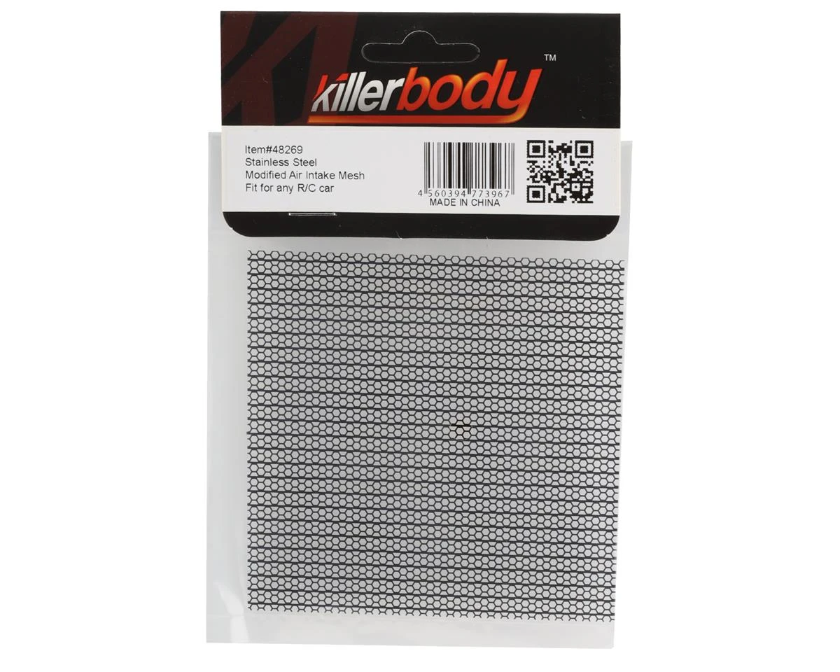 Killerbody Stainless Steel Air Intake Screen. This optional intake screen is a great way to add extreme scale detail to your RC drift car, crawler, touring car and more! This mesh is made from stainless steel and features a honeycomb cut divided into 4mm wide strips throughout the entire sheet. Package includes one sheet.