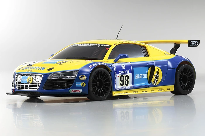 With just 8 x AAA-size batteries, the MINI-Z Racer allows anyone to enjoy the beautiful style and advanced performance of R/C cars. First launched in 2013, Kyosho has renewed the MINI-Z Racer Sports MR-03 concept to be even more user-friendly and appealing to more drivers with the MINI-Z RWD series! Widely popular body styles in highly detailed body sets create the incredibly realistic model lineup. Including the latest Syncro KT-531P transmitter with steering trim, throttle trim, dual rate, LED control function, the sponge grip of the steering wheel provides comfortable fit for precision control feel. The set also includes a car body finished to display-model standard that matches stunning style with the performance, reliability and durability of the MR-03 chassis. The new control program on the circuit board provides linear handling characteristics and can be further enhanced for even easier control by installing the optional gyro unit (MZW431). This series represents the perfect package for a deep dive into the amazing world of R/C cars!