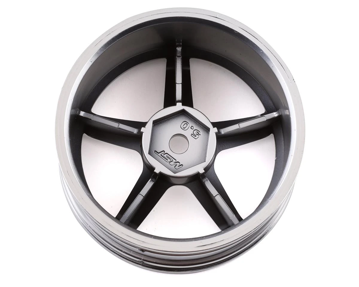 This is an MST 5 Spoke Wheel Set. These wheels offer a +5mm offset increase and feature a 5 spoke design with molded in bolt details that will look great on any drift car. Package includes four wheels.