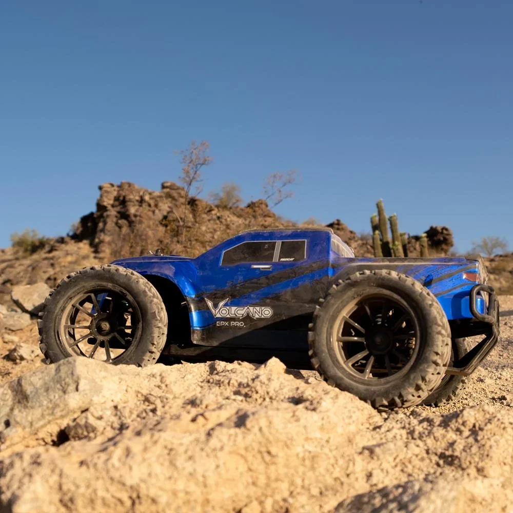 The Volcano EPX Pro is among the best selling RTR monster trucks of all time for a reason. Not only is it exciting to drive and really fast, the Volcano EPX Pro has huge parts support with many available custom aftermarket parts, including color anodized machined aluminum parts, as well as a large selection of other performance options.