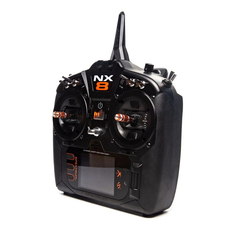 The next-generation Spektrum™ NX8 offers a powerful combination of features and programmability available from no other 8-channel radio — including Wi-Fi connectivity; a large, 3.2” backlit color display; and built-in Smart Technology support.
