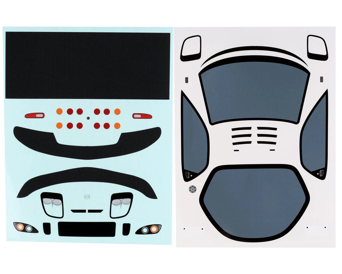 Yokomo RE Amemiya FD3S RX-7 Body Set. This clear polycarbonate body comes with decals to depict light buckets, window frames, grill and more. Accessories can be purchased to add further details to the RX-7 body. Package includes one clear body, window mask and decals.
